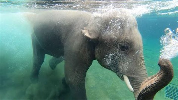 Just keep swimming.Like most other mammals, elephants are natural-born swimmers. They can swim completely submerged underwater, using their trunks to breathe. Because of this built-in snorkel, elephants can swim for hours without stopping.