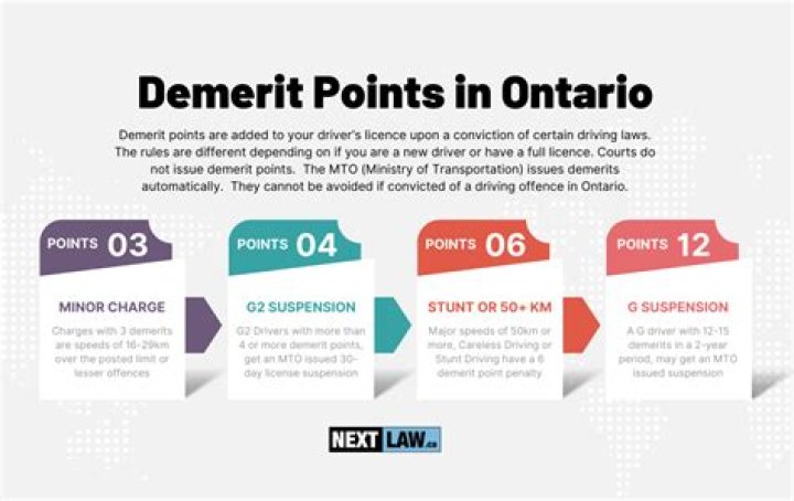 You start with zero points and gain points for being convicted of breaking certain traffic laws. Demerit points stay on your record for two years from the offence date. If you collect enough points, you can lose your driver’s licence.