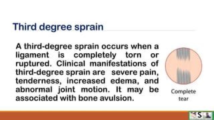 - Grade 3 (Severe). The ligament is torn completely.