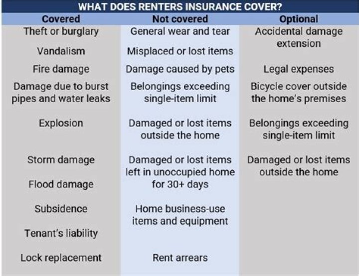 What are some items that renters insurance will cover?