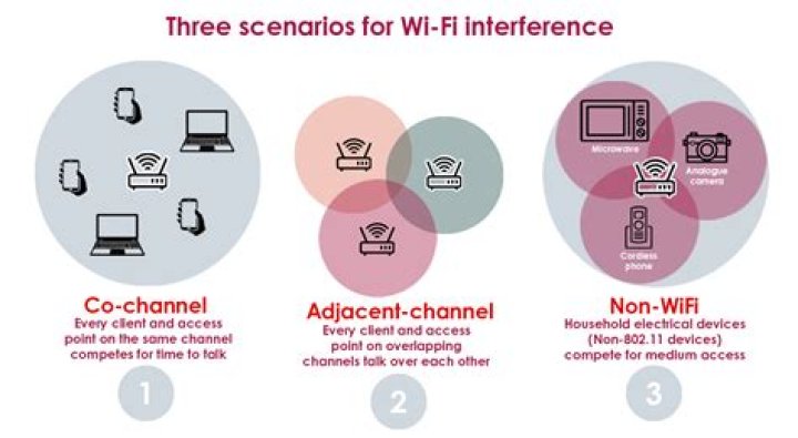 Your wireless network is most probably affected by wireless interference when the following symptoms occur: an intermittent connectivity or unexpected disconnections, delays in connection and data transfer, slow network speeds, and poor signal strength.WiFi Interference - What is it and how to fix it?