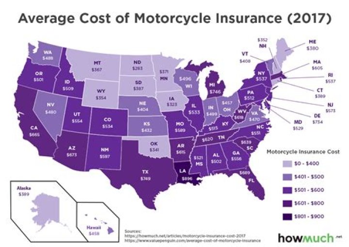 Average cost of motorcycle insurance by state