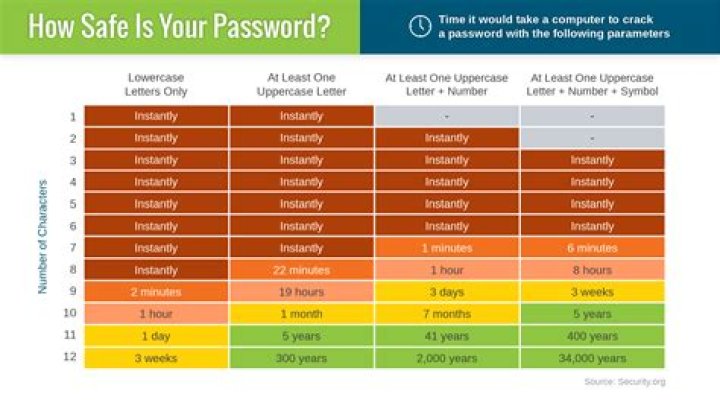 Having a long mix of upper and lower case letters, symbols and numbers is the best way make your password more secure. A 12-character password containing at least one upper case letter, one symbol and one number would take 34,000 years for a computer to crack.How many characters is a strong password?