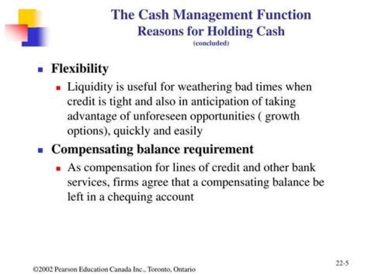Here are the answers to your questions: 1. The two principal reasons for holding cash are for “transactions” and for “compensating balances”. No, the target cash balance is not equal to the sum of the holdings for each reason because the same money can often partially satisfy both motives.