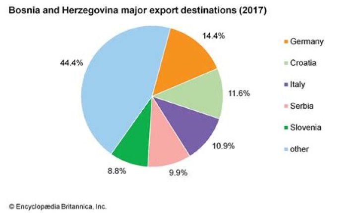 The most common destination for the exports of Bosnia and Herzegovina are Germany ($974M), Italy ($844M), Croatia ($810M), Serbia ($752M), and Austria ($636M). In 2019 Bosnia and Herzegovina imported $11.2B, making it the number 96 trade destination in the world.