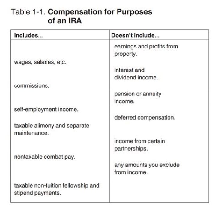 (If you are married, you and your spouse’s combined IRA contributions are limited to your combined such compensation.) The income in question must be something that is included in your gross income (e.g., foreign earned income that is excluded would not count), and It has to be income that counts as compensation. So what counts as compensation?