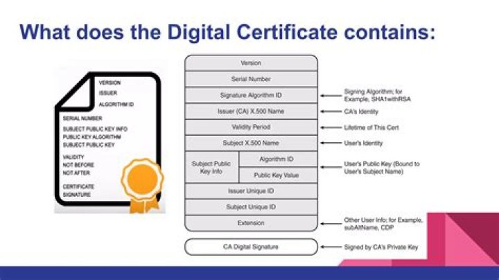 The certificate includes information about the key, information about the identity of its owner (called the subject), and the digital signature of an entity that has verified the certificate's contents (called the issuer).What are the main features of a digital certificate?