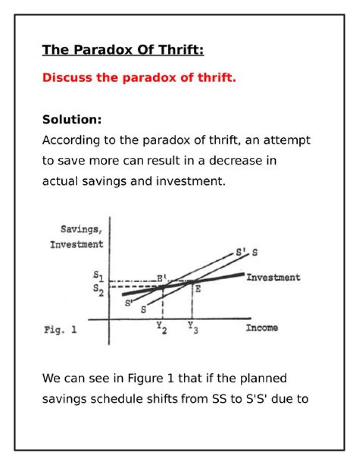 Concept of Paradox of Thrift (with Diagram)! Paradox of thrift refers to contrasting implications of savings to households and to economy as a whole. In this connection, Keynes pointed out ‘paradox of thrift’ and showed that as people become thriftier, they end up saving less or same as before.