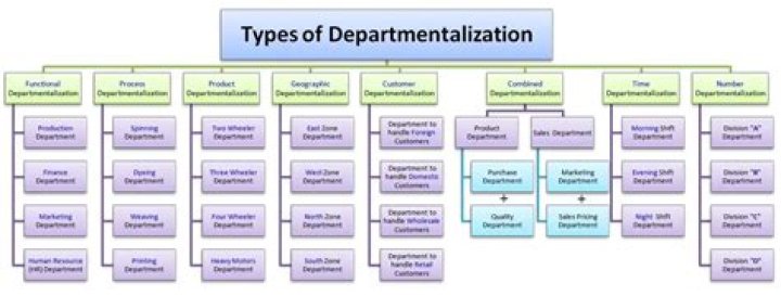 Types of Departmentation – Functional, Product, Geographical, Customer, Process or Equipment, Project or Matrix Departmentation, Team Structures and a Few Others. Departmentation is the way in which an organization groups its various activities. There are many ways in which organizations can be departmentalized.