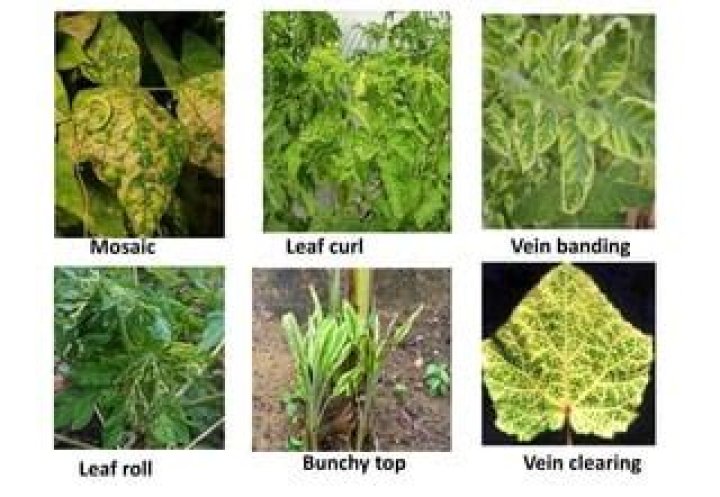 Yellowing of the entire network of veins in the leaf blade is the characteristic symptom. In severe infections the younger leaves turn yellow, become reduced in size and the plant is highly stunted. The veins of the leaves will be cleared by the virus and intervenal area becomes completely yellow or white.What does mosaic virus do?