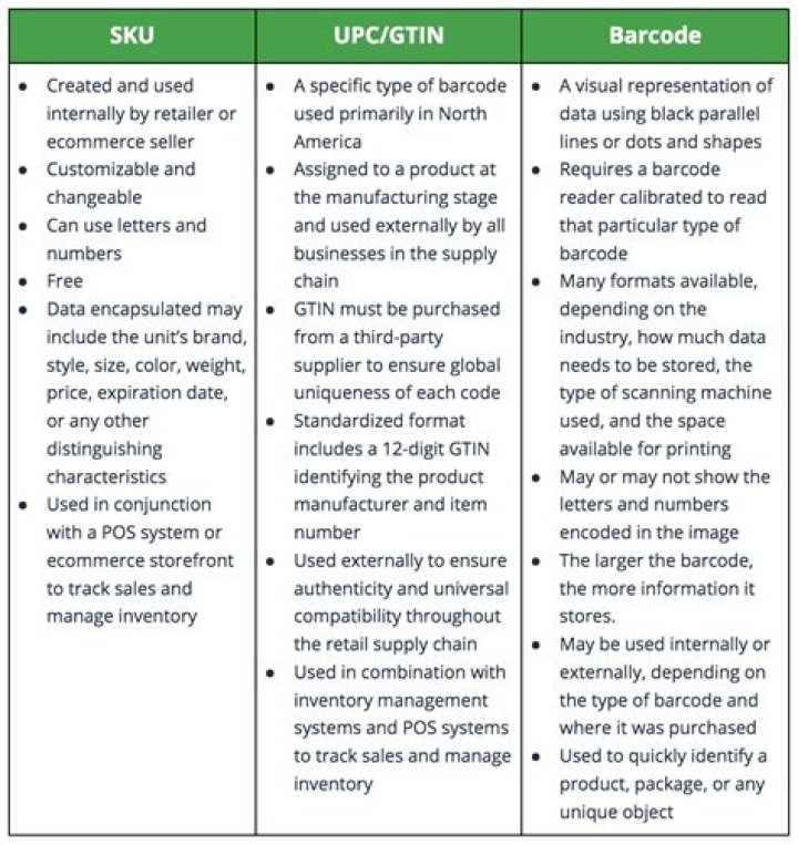 While stock keeping units or SKUs and barcodes are similar, they are not the same. A barcode is different from a SKU by the way it is assigned to a product—SKU numbers are unique to a business or seller, and barcodes should be assigned to all like products regardless of where they are sold.