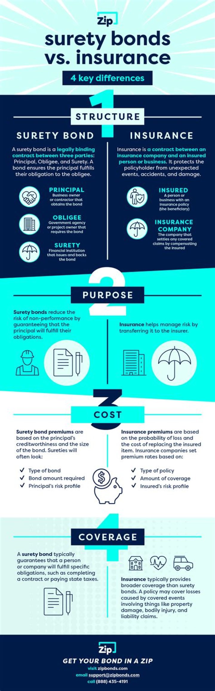 Insurance protects the business owner, home owner, professional, and more from financial loss when a claim occurs. Surety bonds protect the obligee who contracted with the principal to perform specific work on a project by reimbursing them when a claim occurs.