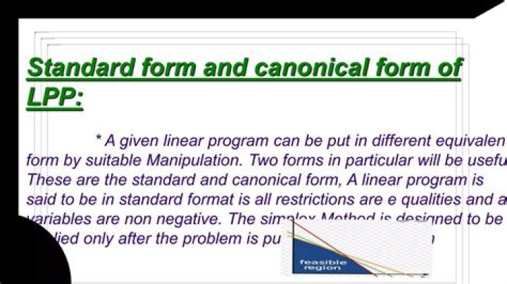 Two forms are dealt with here, the canonical form and the standard form. x1, x2, x3, ... xn ≥ 0. This form of LPP is called the canonical form of the LPP.What is standard LPP?