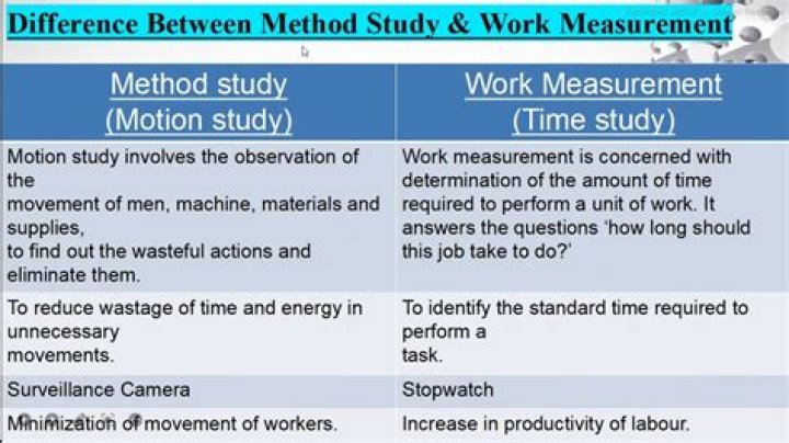 Method study and work measurement is part of work study. Part of method study is motion study, work measurement is also called by the name ‘Time study’. 1 Advantages of Work Study Following are the advantages of work study: 1. It helps to achieve the smooth production flow with minimum interruptions.