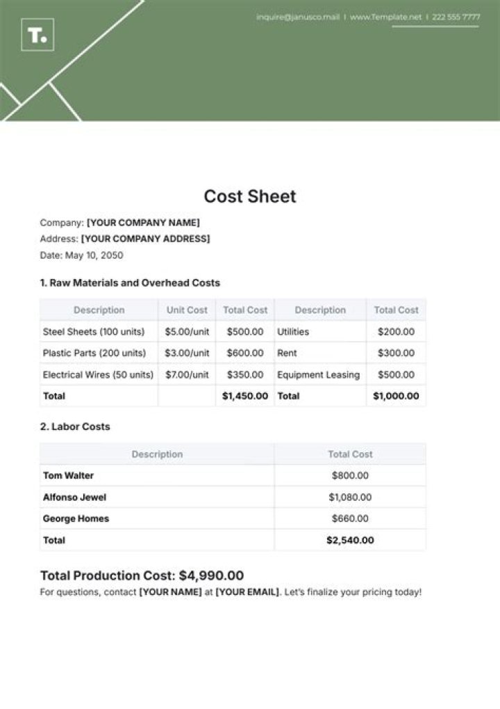 A job cost sheet is a document or record that compiles all of the costs that go into a particular job. It is a way for a company to separate costs. By separating the costs, a company can better understand how much they spent on each unit per product produced.