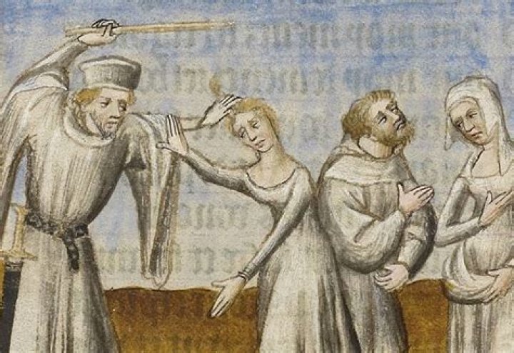 A common punishment for adulterous women – whipping, head shaving, and parading the adulteress through the streets resembles the entry procedure before enclosure. The husband could take her back or leave her perpetually enclosed.What crimes was torturing the common punishment in medieval times?
