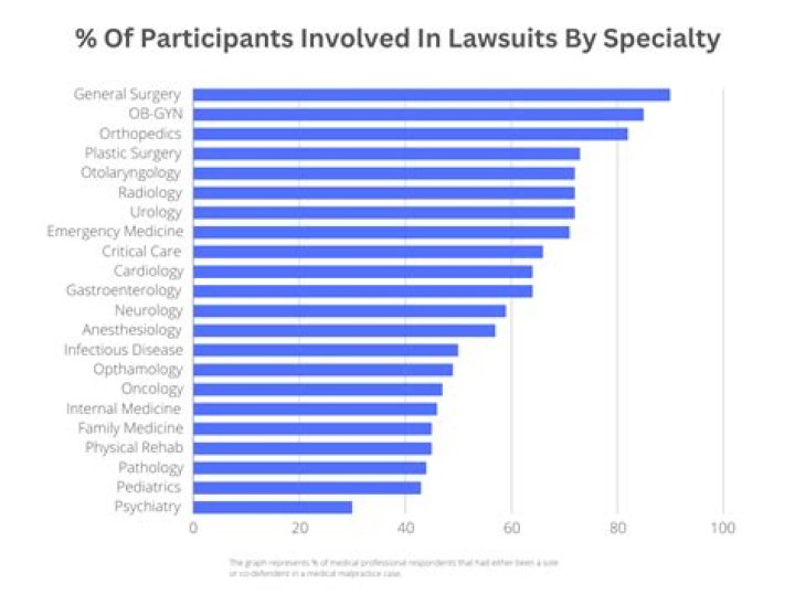 The specialties most likely to be sued According to Medscape, specialists were more likely than primary care physicians (PCPs) to be sued for medical malpractice. The survey found that 13% of specialists said they had been sued individually, while 50% said they had been named in a lawsuit with multiple defendants.