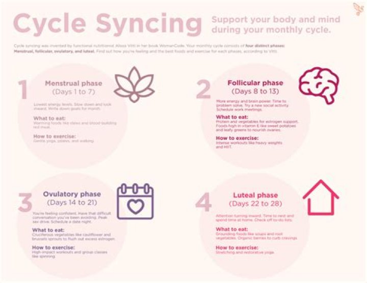 Cycle syncing is the practice of changing your diet, exercise, and lifestyle habits to align with the stages of your menstrual cycle. The idea is that by changing these factors during each stage of your cycle, you're able to meet the hormonal needs of your body making the menstrual phase easier to manage.Can a 4 year old get a period?