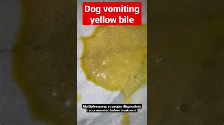 Vomit that's yellow or green, or looks foamy, usually contains bile, a substance that is produced by the liver and that assists with the digestive process. If your dog's vomit is foamy it can indicate a buildup of stomach acid.Should I feed my dog after vomiting yellow bile?